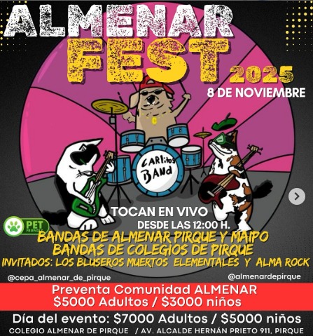 Realmente honrados de estar en este festival que se hace en Pirque, es un evento único, donde se realiza una muestra de música de la mayoría de los colegios de Pirque, un evento que reune a toda la familia, con entretención y mucha, pero mucha música….